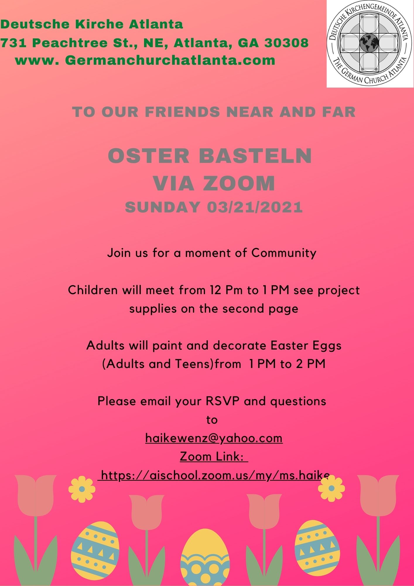 Atlanta, GA 30308Die Deutsche Kirchengemeinde Atlanta finanziert sich ausschließlich durch Spenden unserer Freunde und Mitglieder.